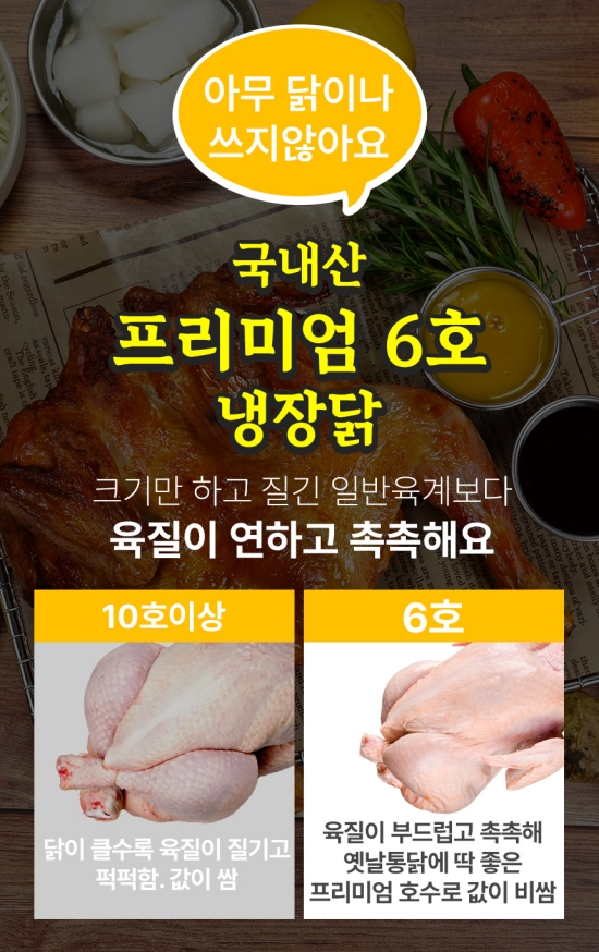 옛날통닭 : 닭[삼계닭] 98%,복합조미식품[KJ염지제] 1%,정제수 1% / 윙봉 : 닭날개[육계닭(윙봉)] 98%,복합조미식품[GN염지제] 0.5%,복합조미식품[핫마리네이드] 0.5%. 정제수 1%