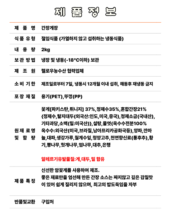 신선하고 알찬 암꽃게만을 직접 선별하여 사용하며 당일생산 당일출고로 신선하게 가정의 식탁으로 보내드립니다.