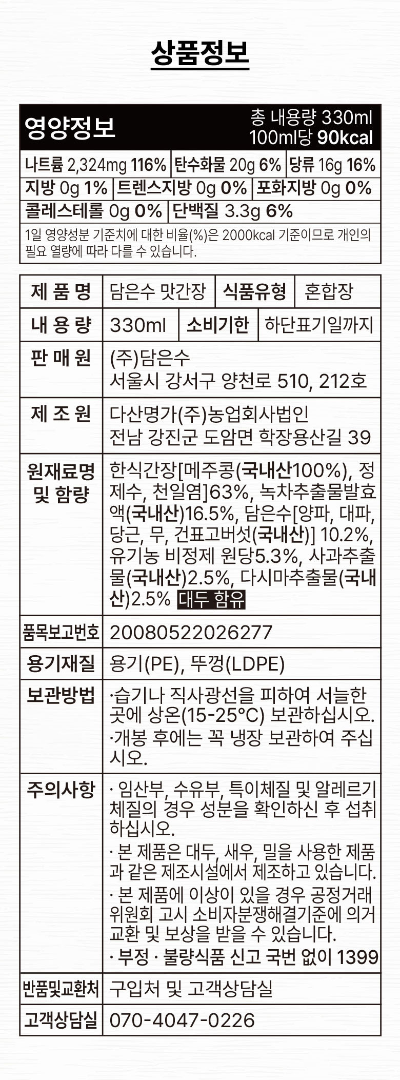 • 담은수 만능 아기양념 국산콩 저염간장 330ml