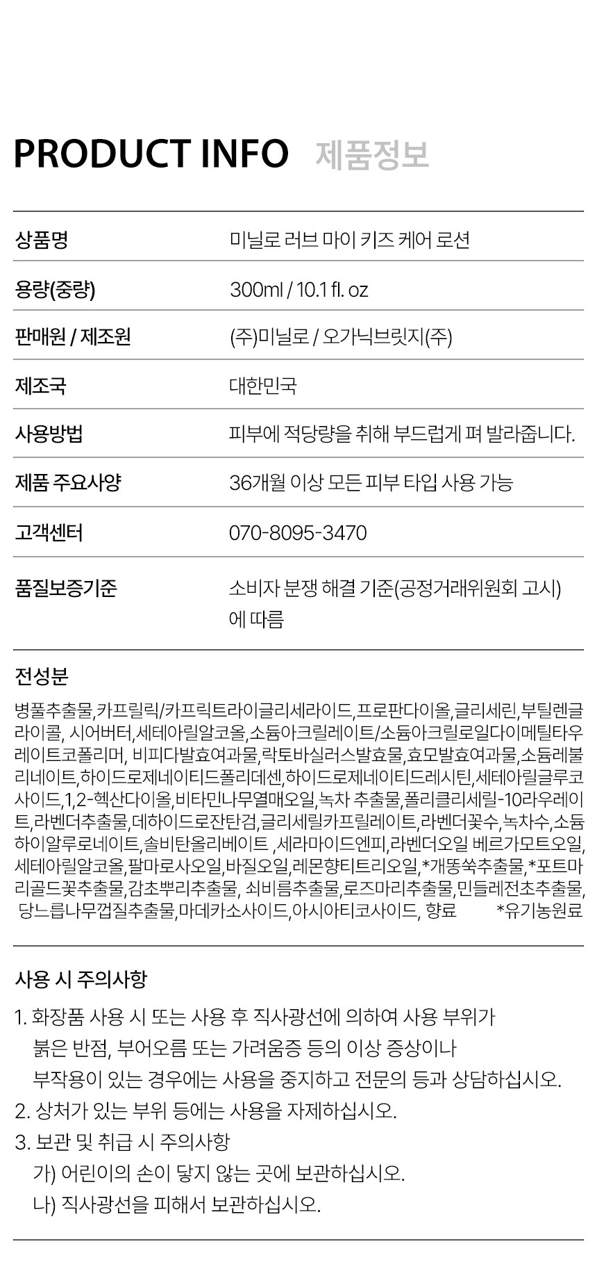 판매원 / 제조원 : (주)미닐로 / 오가닉브릿지(주)