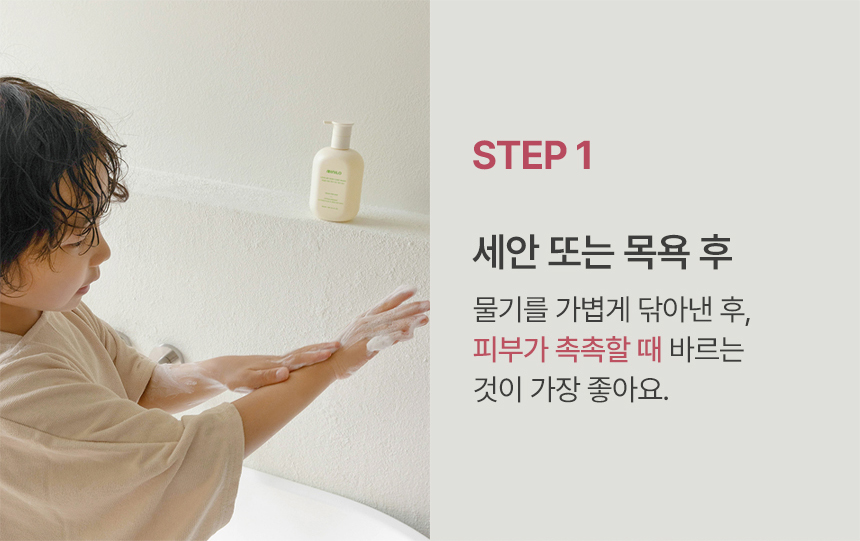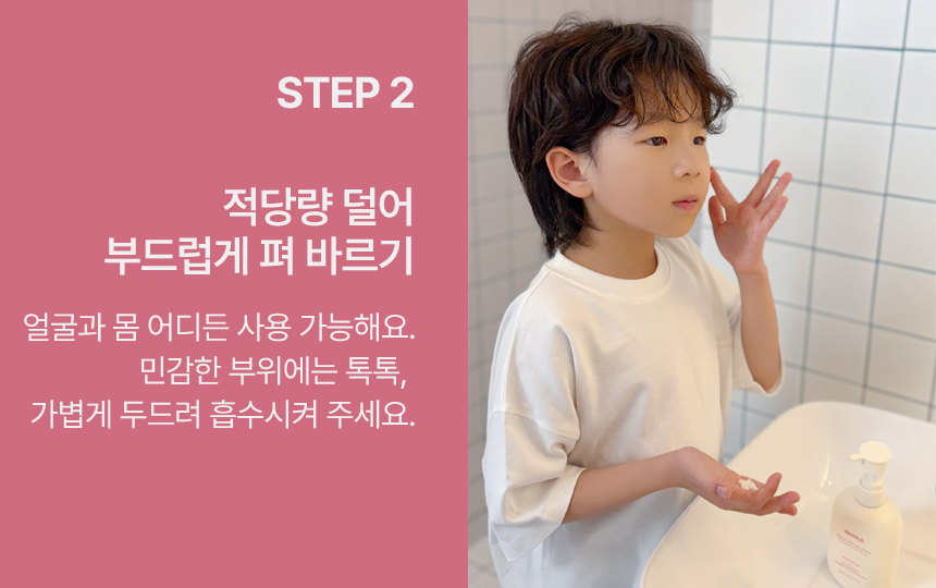 피부에 적당량을 취해 부드럽게 펴 발라줍니다.