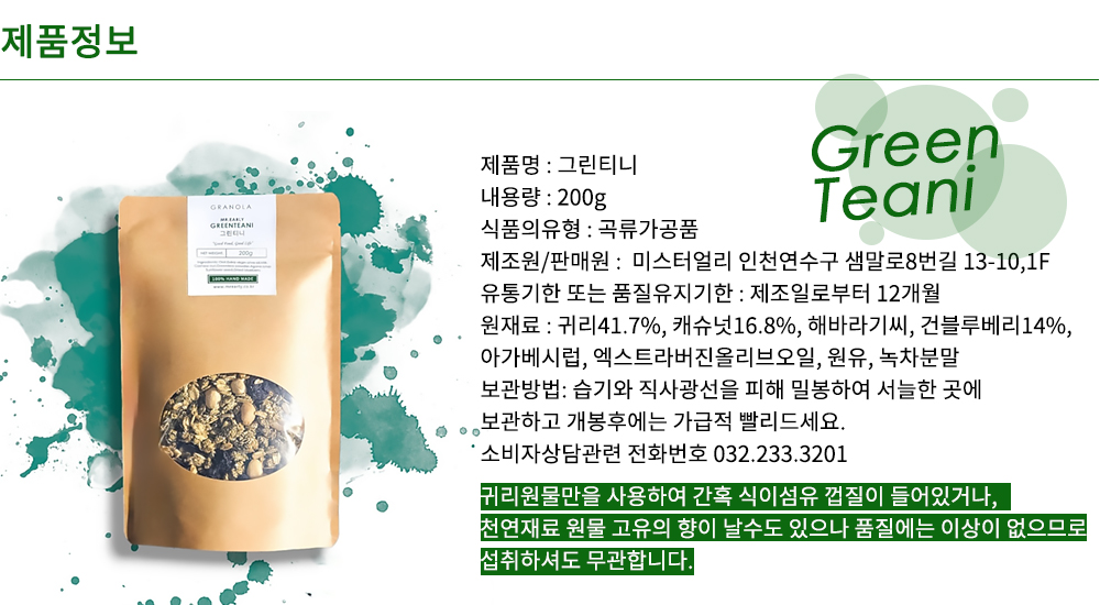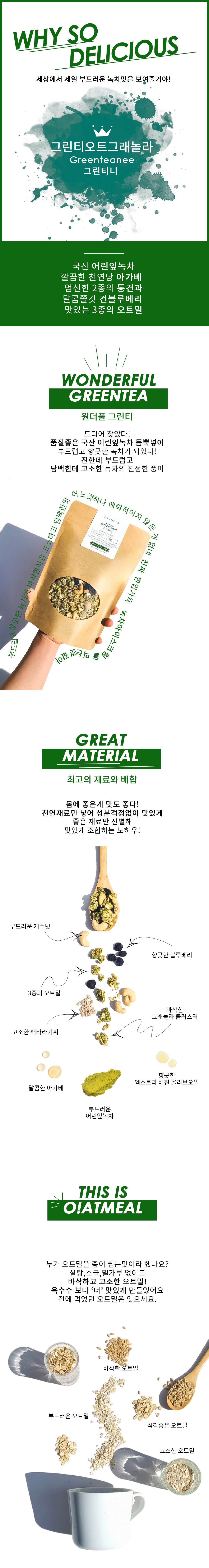 • 국산어린잎녹차듬뿍 무설탕 저당 오트밀 그래놀라200g
