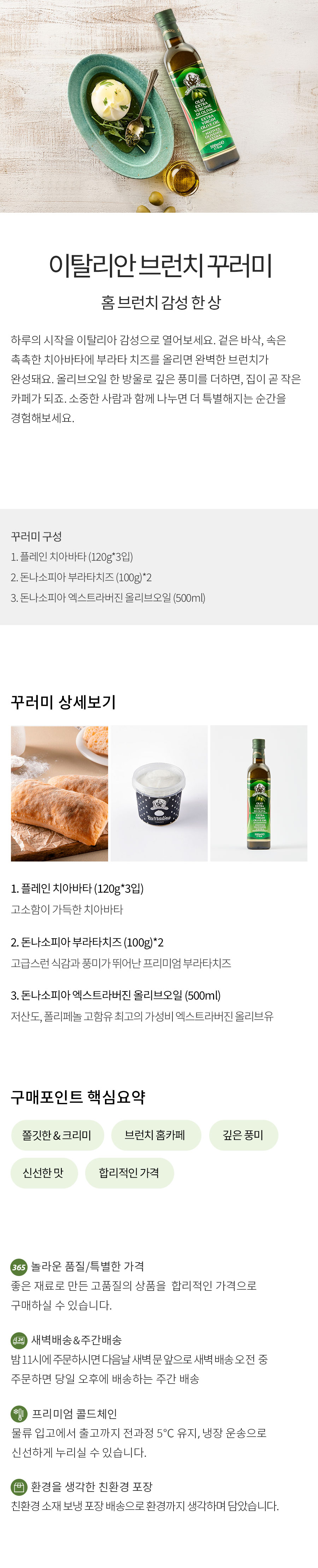 ★미사용★[라이브 한정] 이탈리안 브런치 꾸러미 수량빼기 수량추가 31,000 원 총 수량 1 개 31,000 원 구매옵션 닫기 찜하기 추가 찜하기 삭제 구매후기 3 상품상세 정기구독 장바구니 정기구독 장바구니 판매종료 정기배송 장바구니