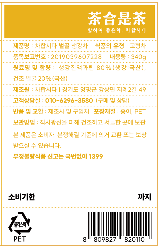 생강진액과립 80% (생강:국산), 건조 벌꿀 20%(국산)