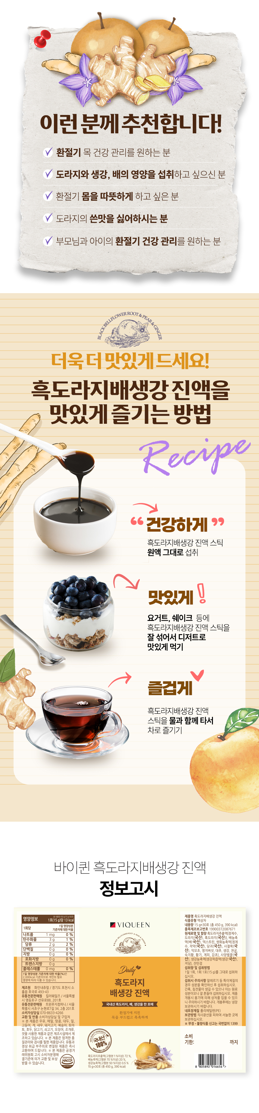 - 바이퀸 데일리 흑도라지 배 생강 진액 차 선물세트(2개입)