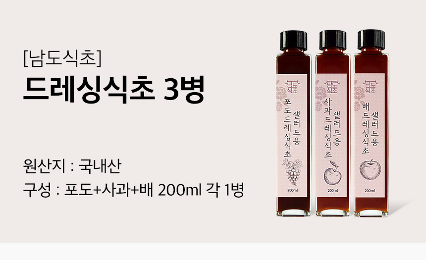 • [남도식초] 하화숙 천연발효 드레싱식초 3종세트 (포도/사과/배)