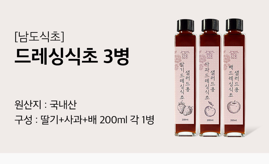 • [남도식초] 하화숙 천연발효 드레싱식초 3종세트 (딸기/사과/배)