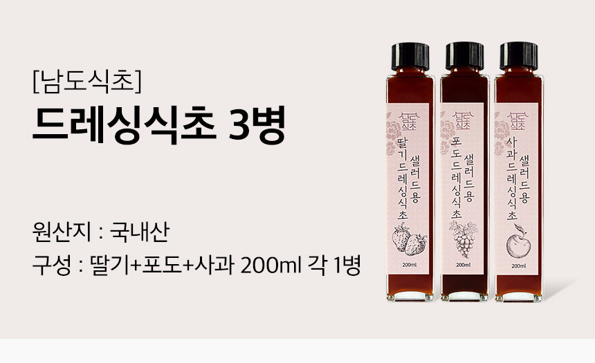 • [남도식초] 하화숙 천연발효 드레싱식초 3종세트 (딸기/포도/사과)