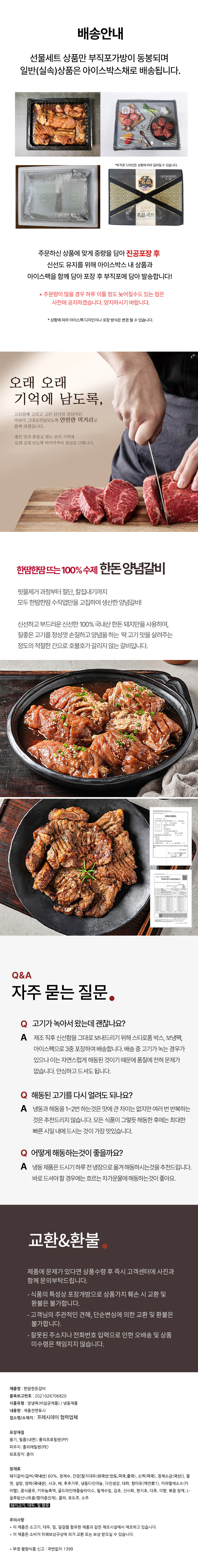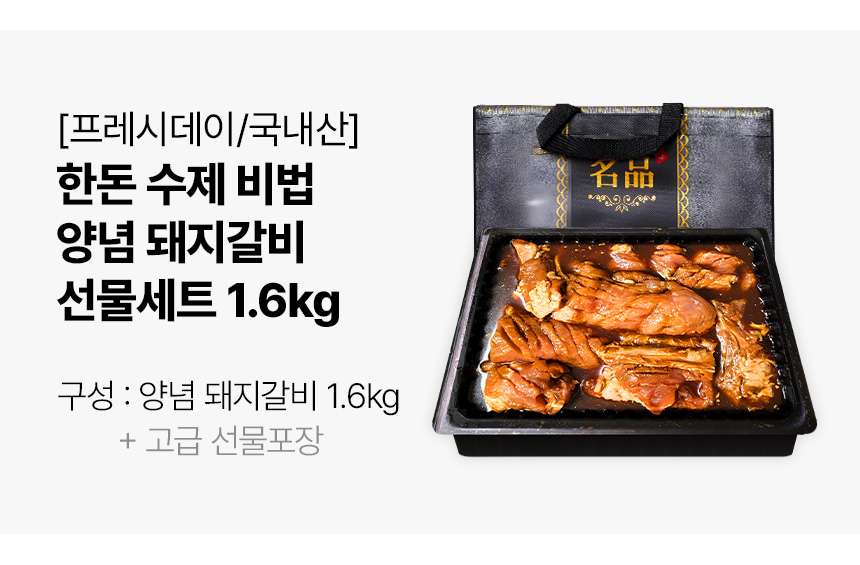 • [프레시데이] 국내산 한돈 수제 비법 양념 돼지갈비 선물세트 1.6kg