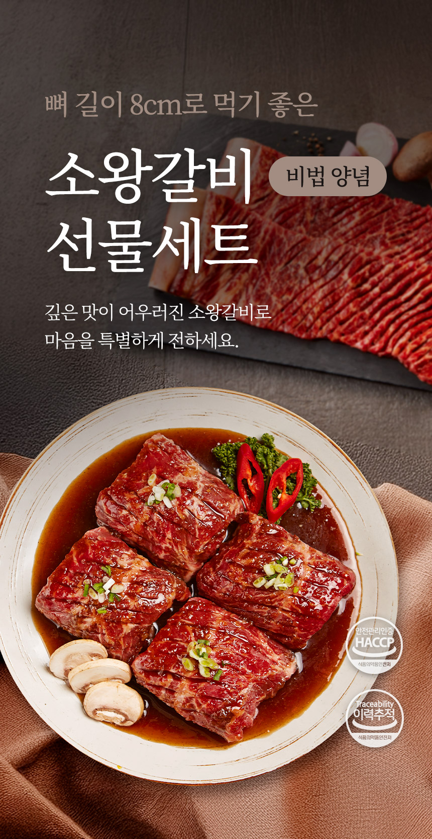 두툼한 8cm 왕갈비에 깊이 스민 비법 양념, 품격이 다른 선물세트