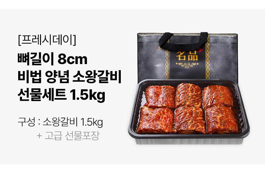 • [프레시데이] 뼈길이 8cm 소왕갈비 비법 양념갈비 선물세트 1.5kg