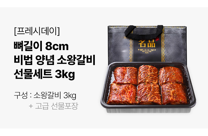 • [프레시데이] 뼈길이 8cm 소왕갈비 비법 양념갈비 선물세트 3kg