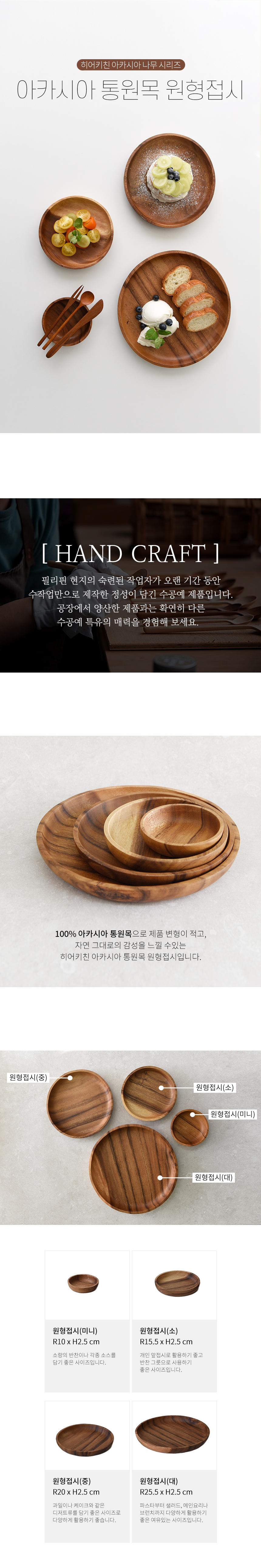 히어키친 아카시아 나무 통원목 원형접시 미니/소/중/대