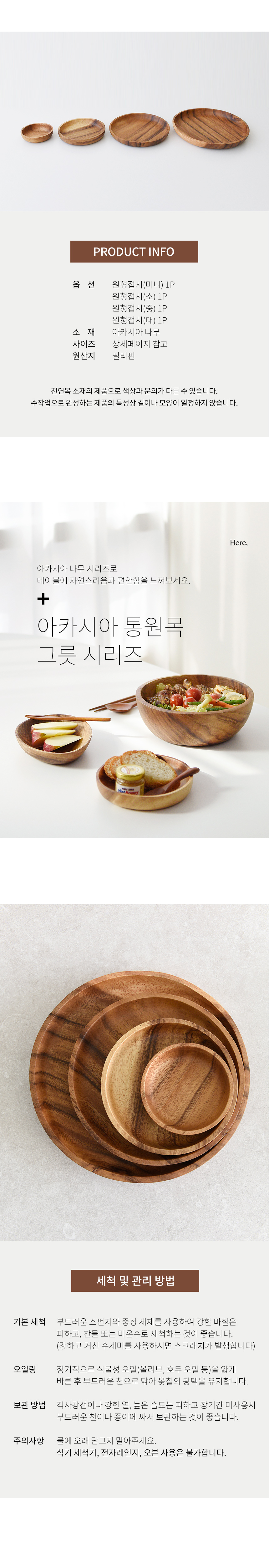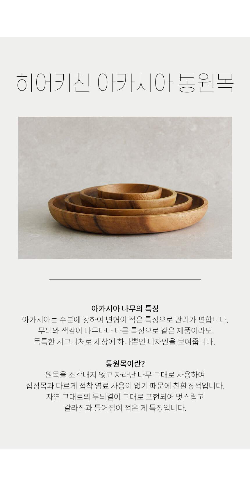 • 히어키친 아카시아 나무 통원목 원형접시 미니/소/중/대