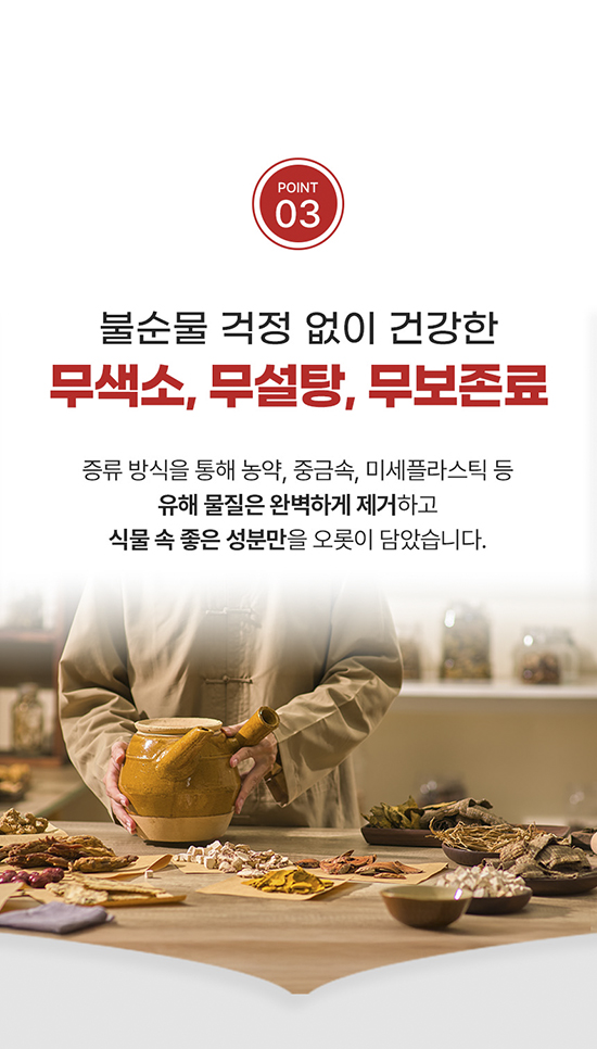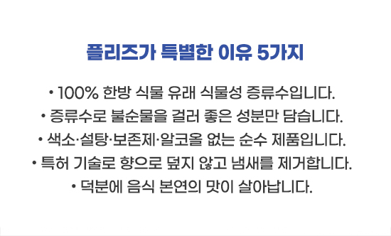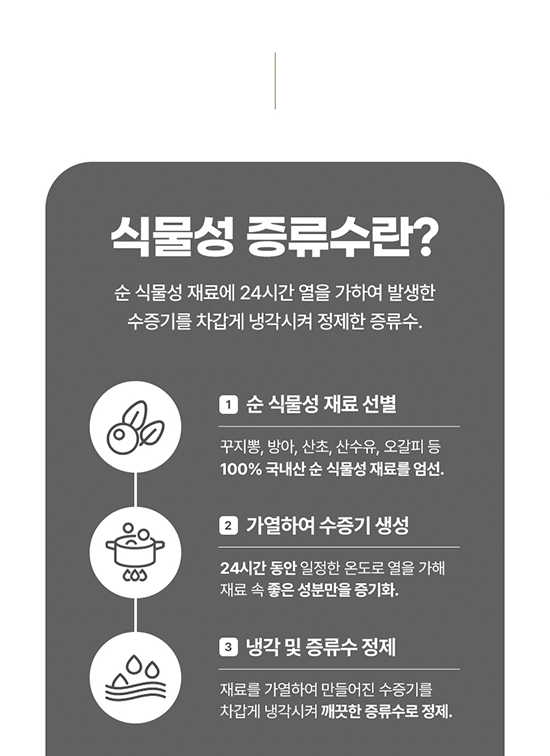 • 증류수로 불순물을 걸러 좋은 성분만 담았습니다.