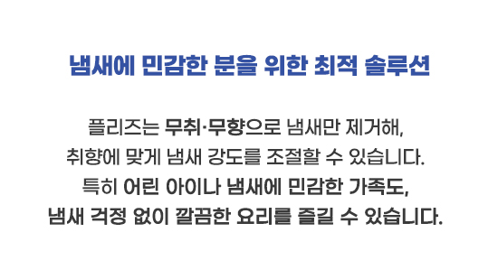 • 특허 기술로 향으로 덮지 않고 냄새를 제거합니다.