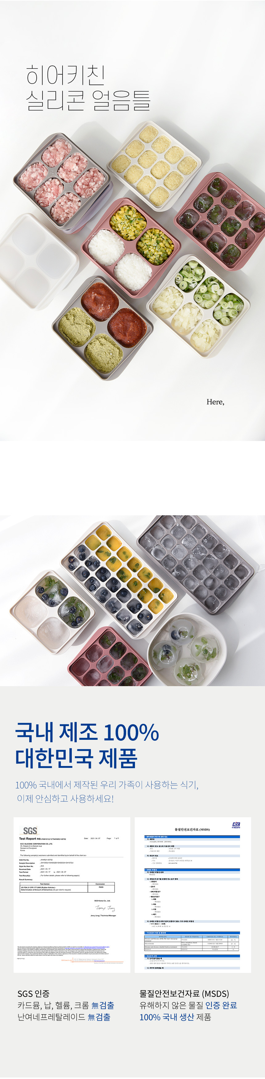 • 히어키친 국산 실리콘 이유식 큐브 보관 용기 4/6/12/28구