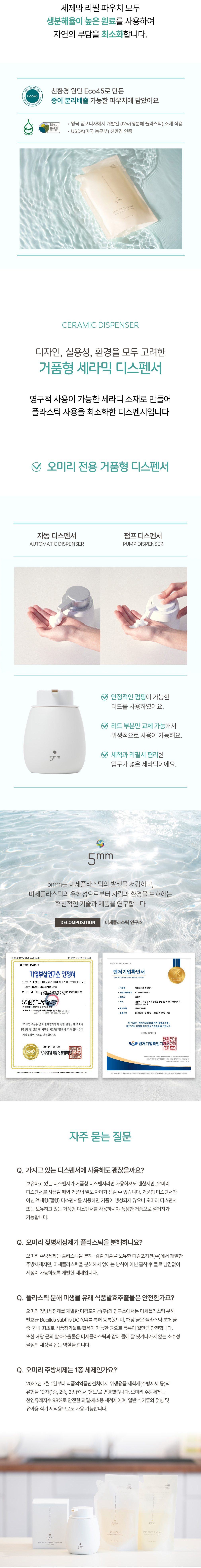• 오미리 미세플라스틱 세정 젖병세정제제 330ml & 세라믹 디스펜서 세트