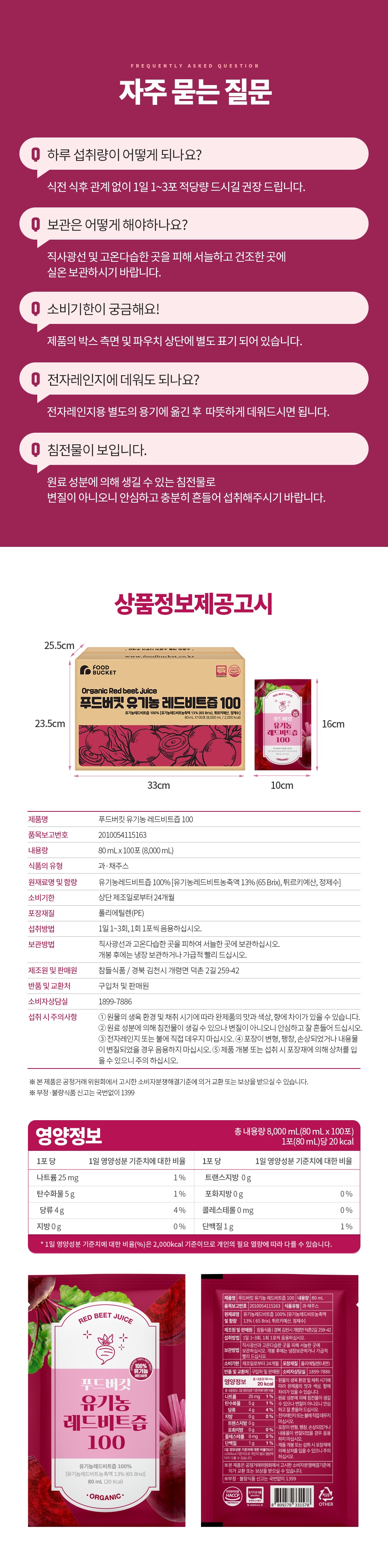 푸드버킷 유기농 레드비트즙 100포, 1개
