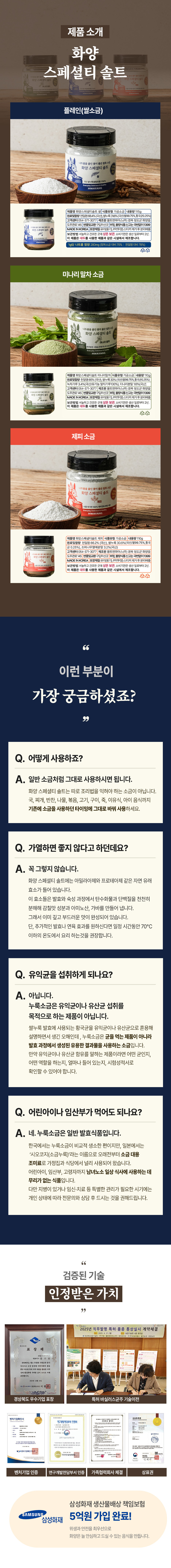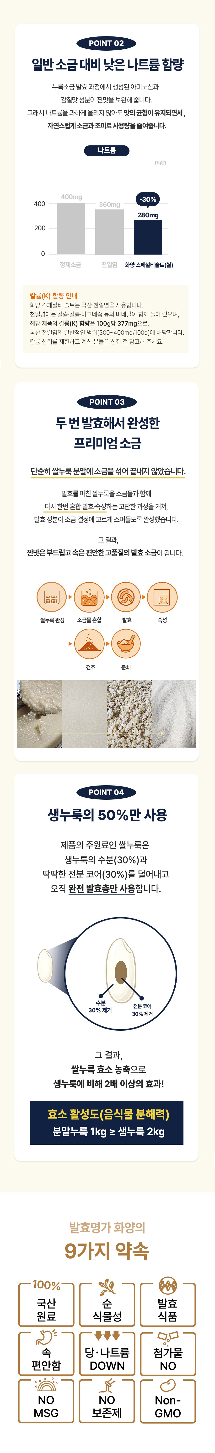 천연 쌀누룩 효소의 음식물 분해로 소화 부담을 줄여주고 감칠맛과 풍미를 올려주는 국산 화양 스페셜티 솔트