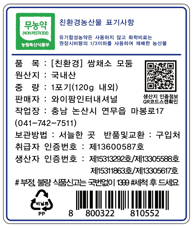 GAP 무농약 유러피안 샐러드3~5믹스