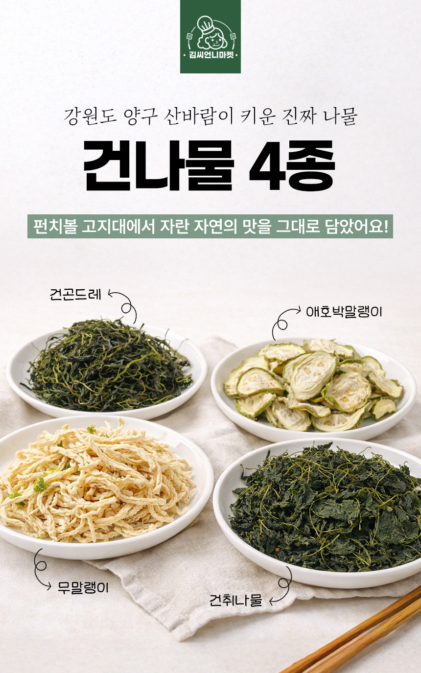 • 100% 국내산 건나물 모음전 (취나물,곤드레,말린애호박,무말랭이)