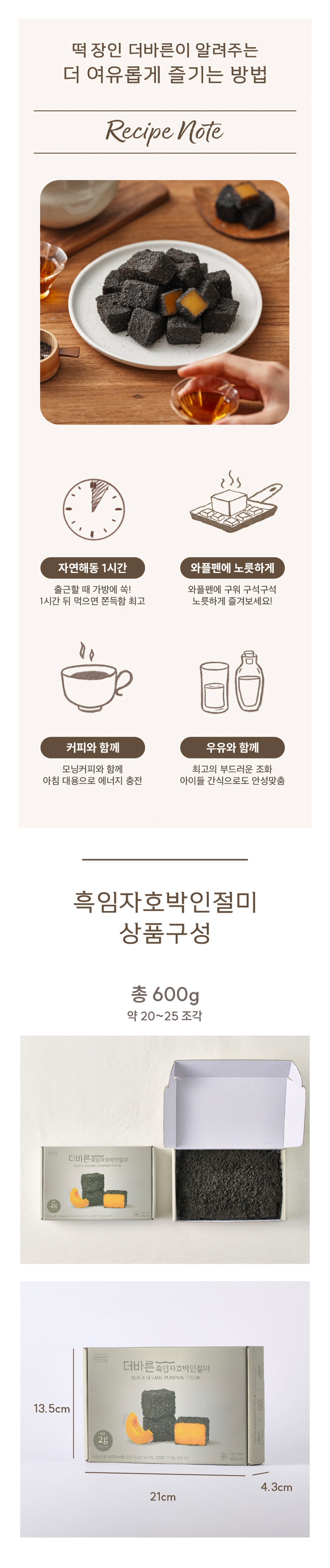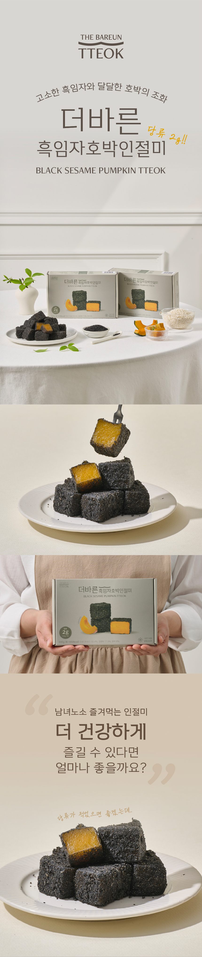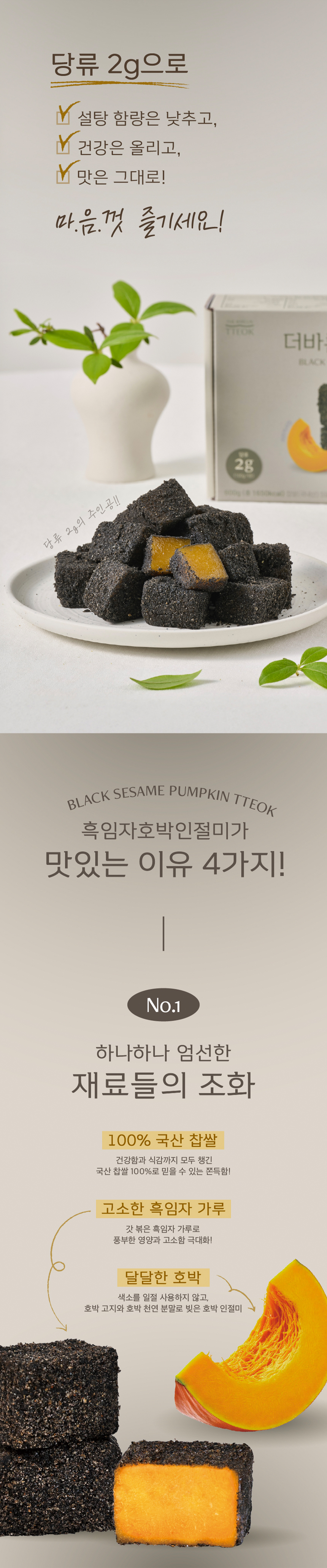 100% 국산 찹쌀로 만든 호박인절미와 고소한 흑임자의 조화
