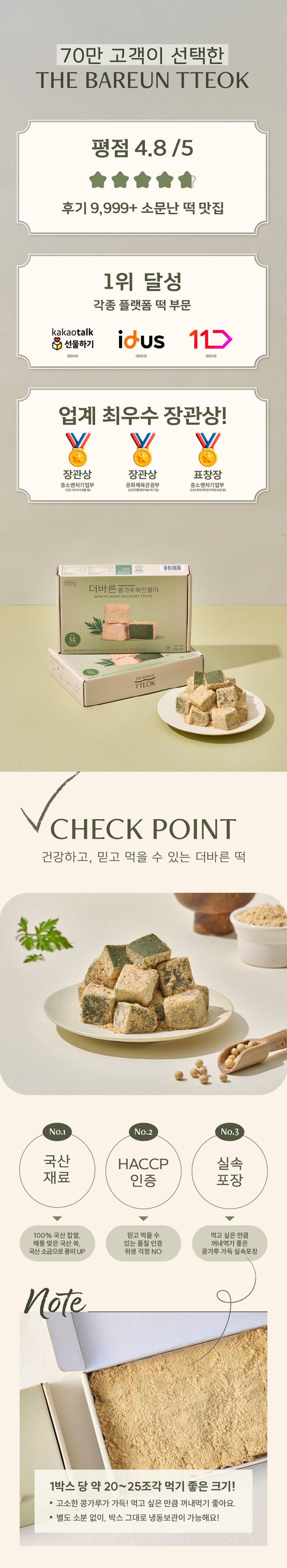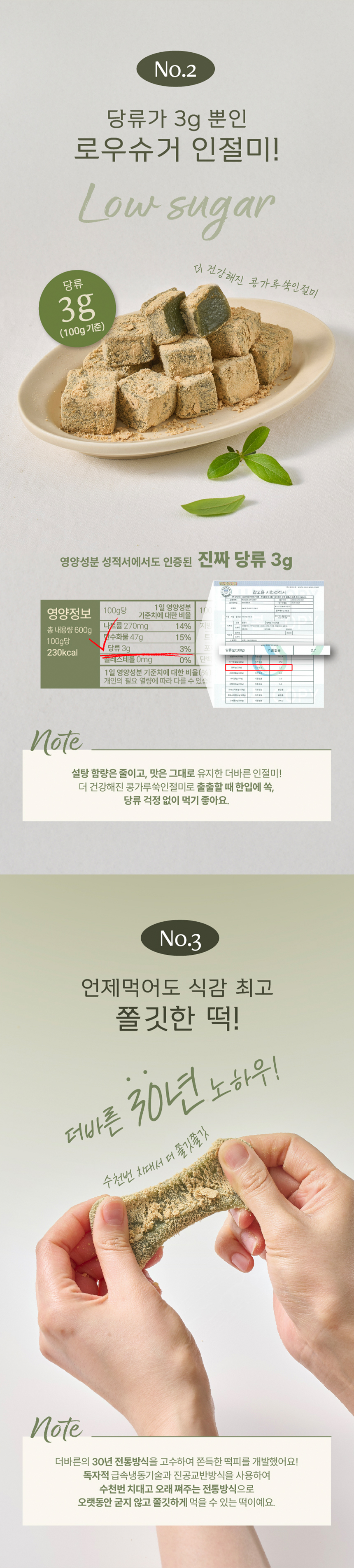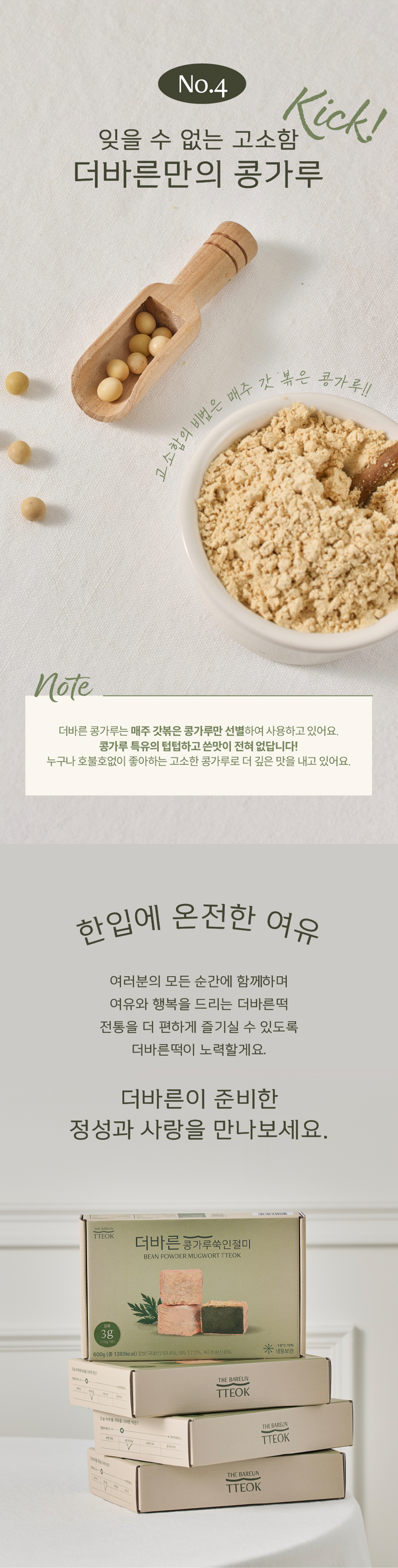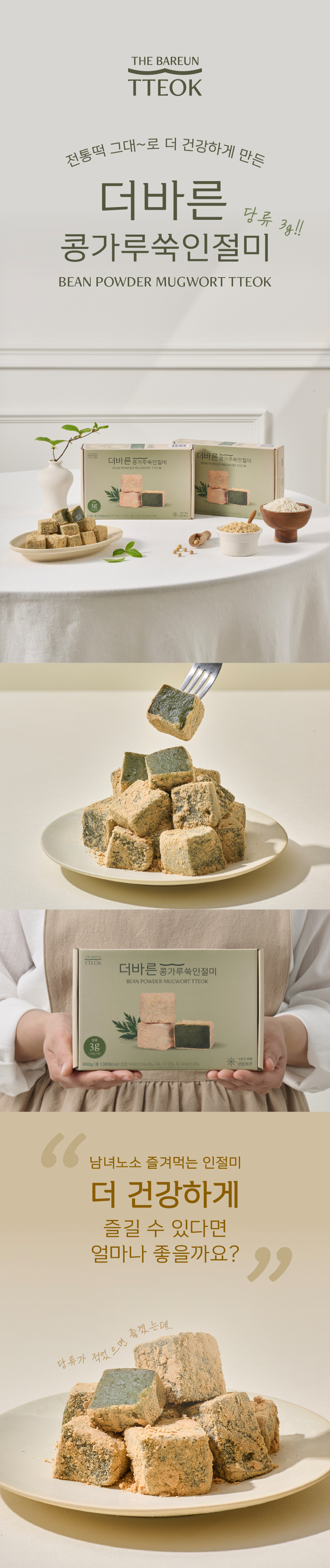 100% 국산 찹쌀과 해풍된 생 쑥으로 만든 쑥인절미와 부드러운 콩가루의 조화