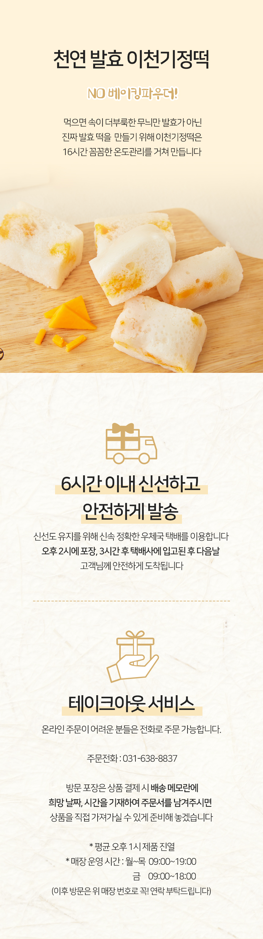 - 백미기정떡, 치즈기정떡, 복숭아크렌베리기정떡, 초코기정떡