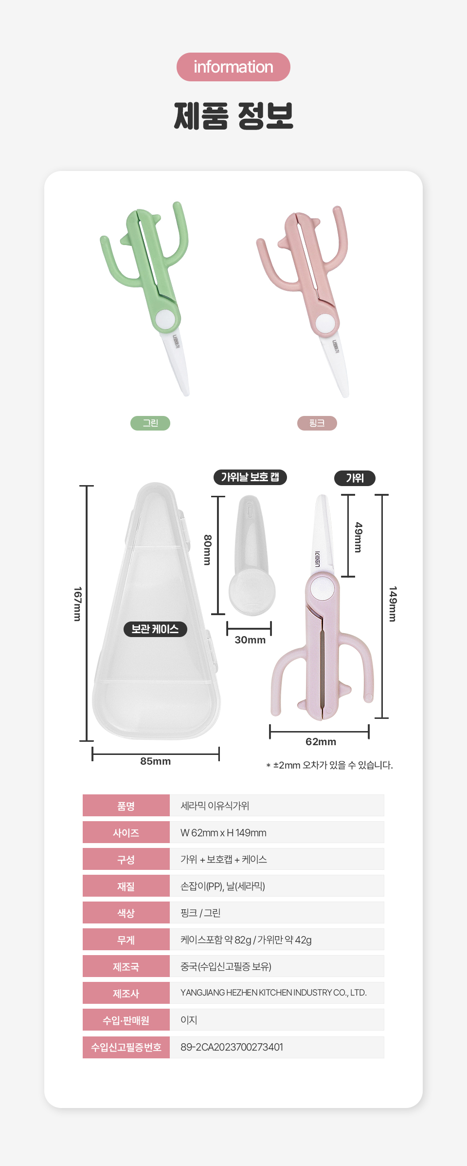 • 세라믹 이유식 가위 케이스 포함