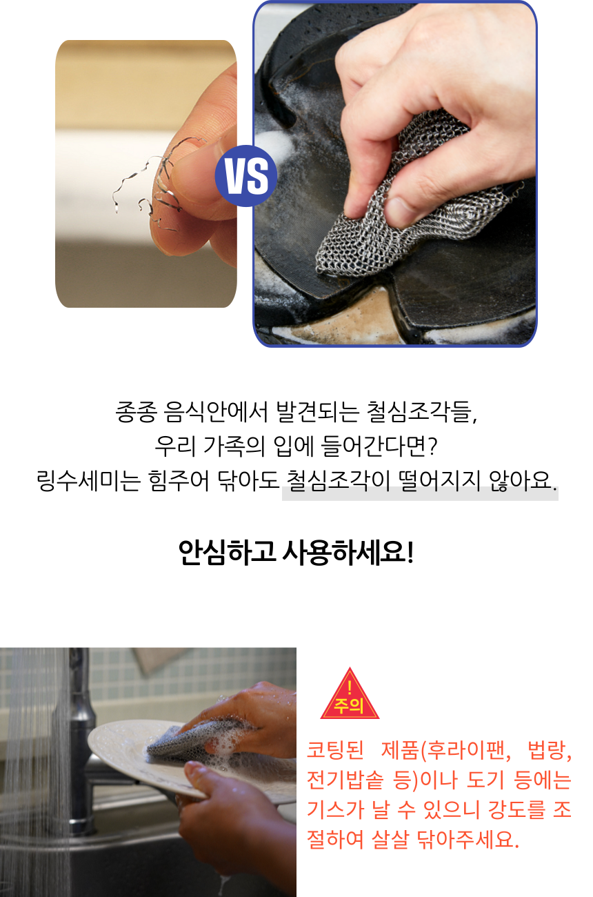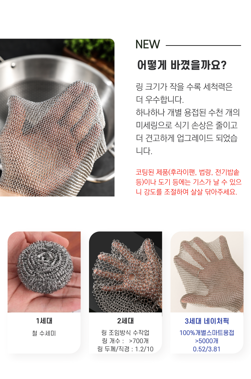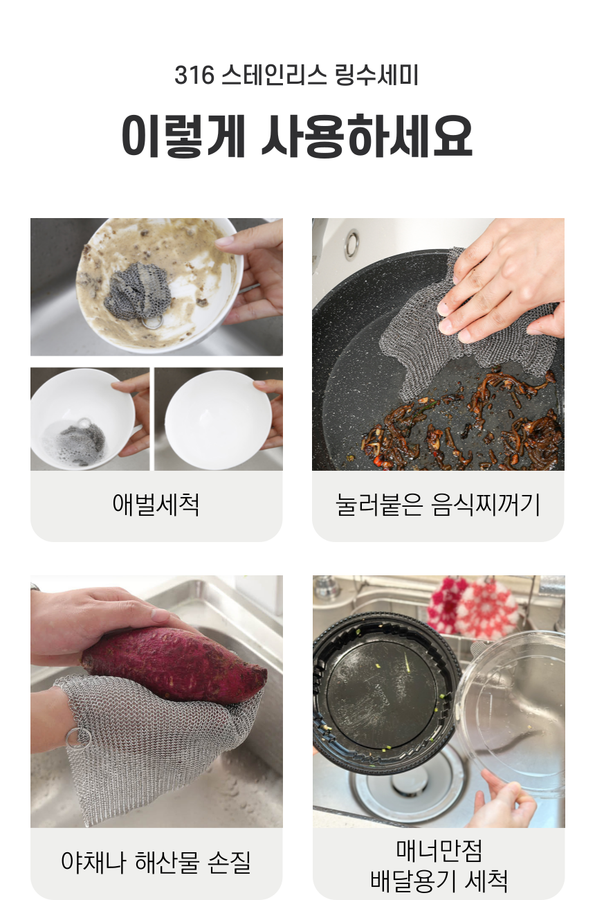 철심 조각, 음식물 끼임, 식기손상 걱정없는 신형 316스텐링수세미! 애벌세척, 텀블러세척, 스테인리스 제품에 적극 추천합니다.