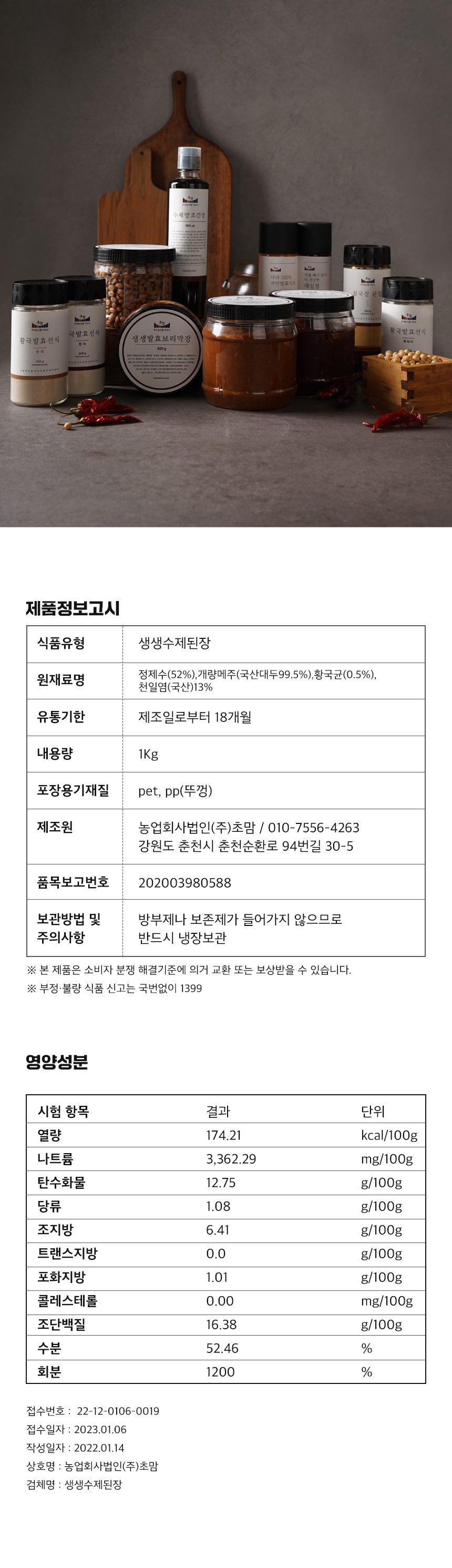 메줏가루(국산), 천일염(국산), 황국균(국산), 정제수