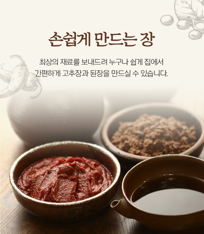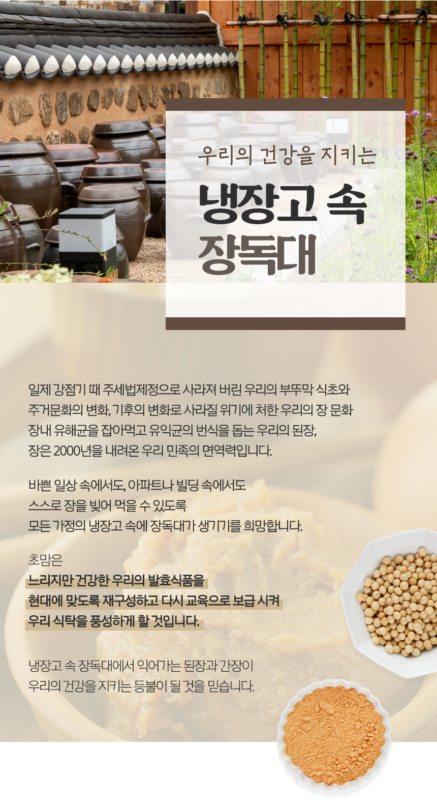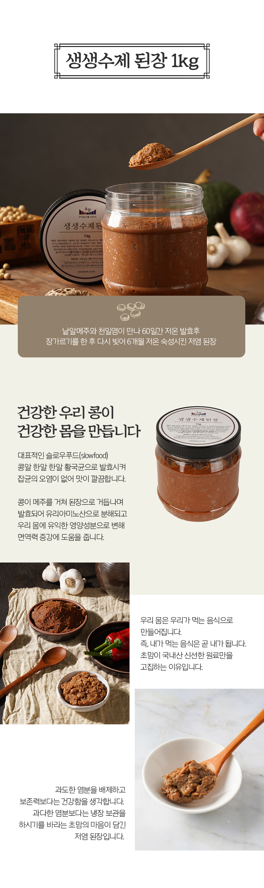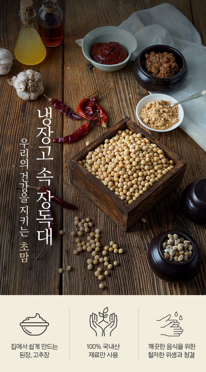 화학첨가물 없이 국내산 재료로만 염분과 당분을 모두 줄여 더 건강하고 맛있는 된장