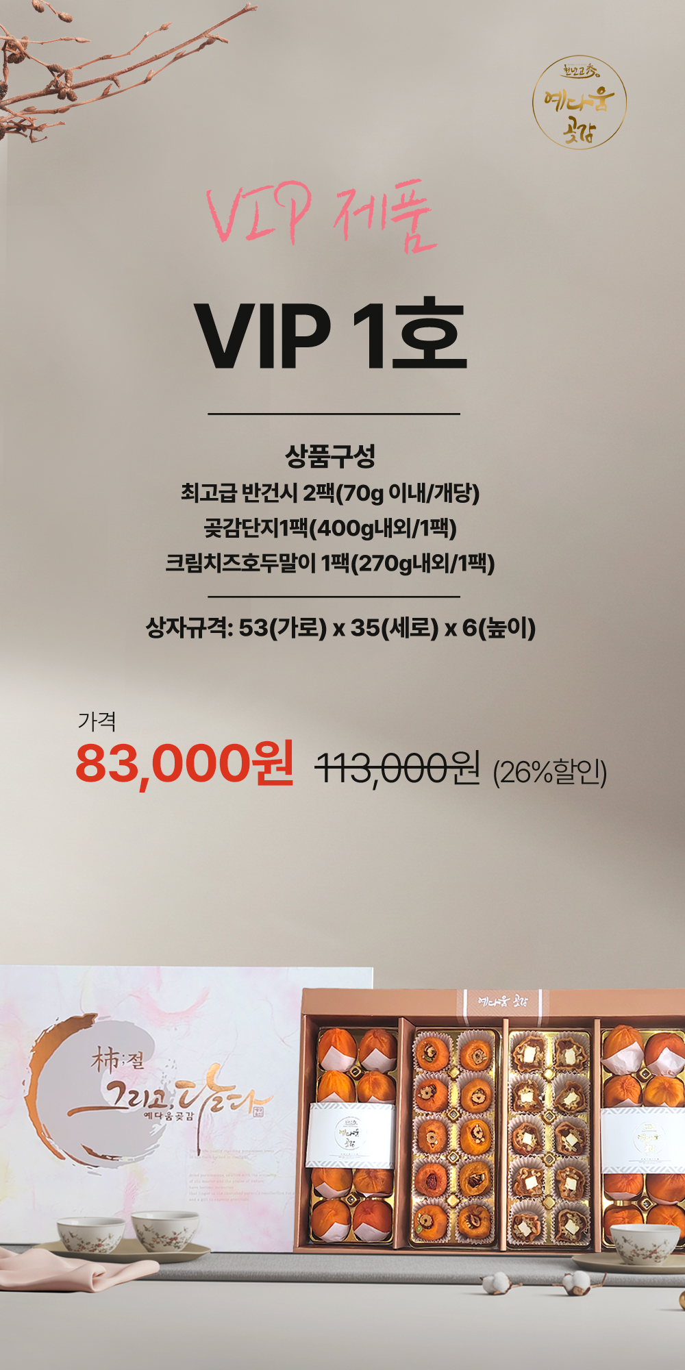7. VIP 3호 (특대 반건시 70g이내) 40과, 선물가방, 감사카드 및 품질보증서