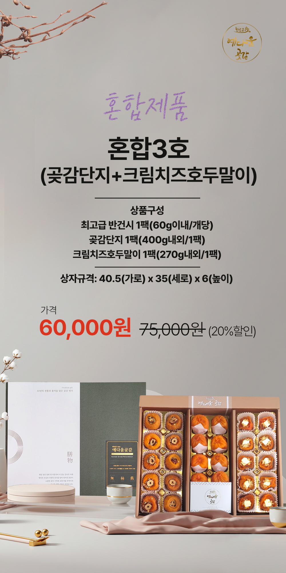 4. 혼합3호 (반건시 대과(60g이내) 10과, 곶감단지 10개입(400g내외), 크림치즈호두말이 10개입(270g내외))