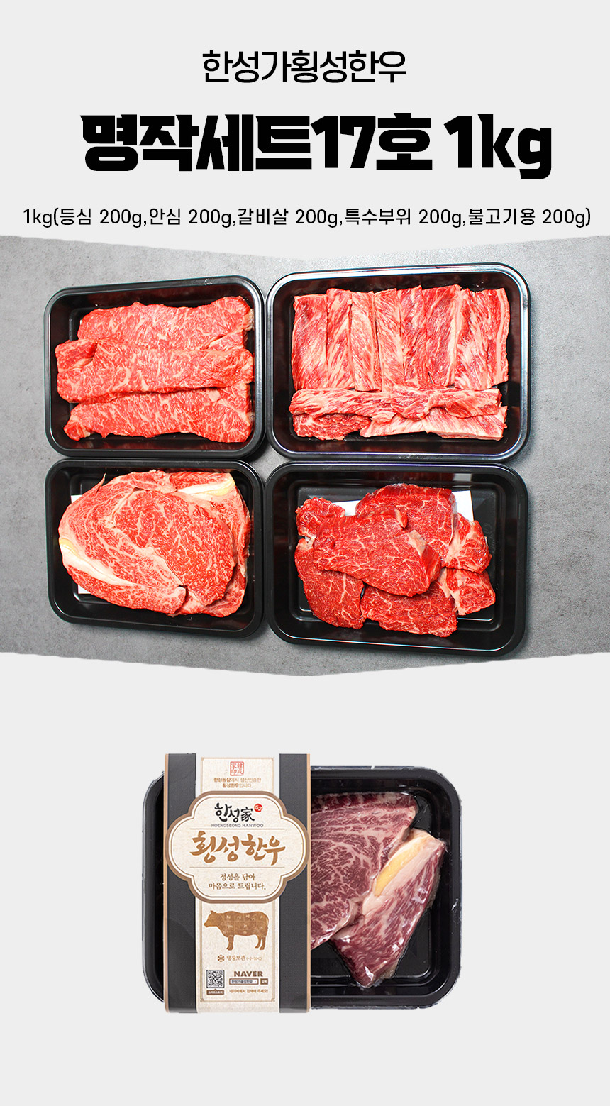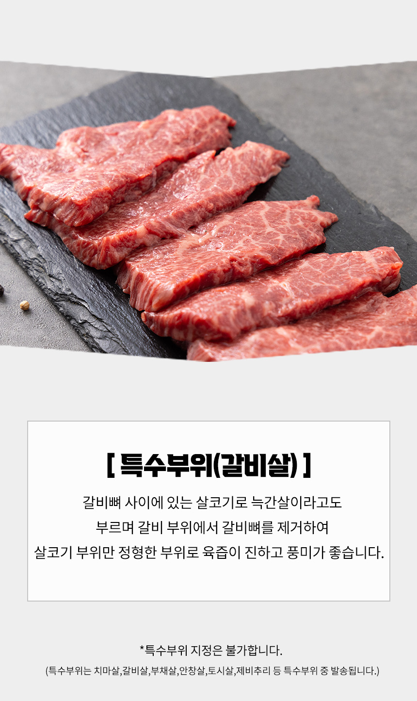 - 등심 200g,안심 200g,갈비살 200g,특수부위 200g,불고기용 200g