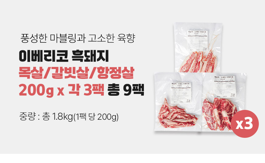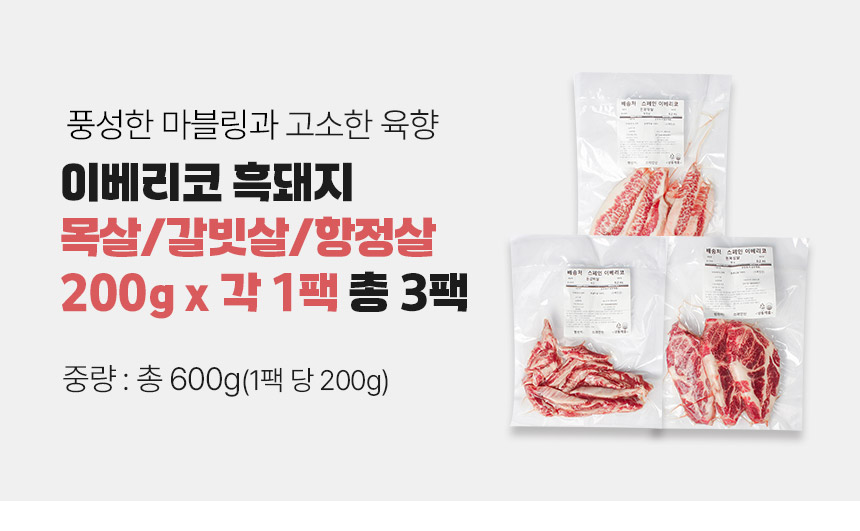 [프레시데이] 이베리코 흑돼지 목살 갈비살 항정살