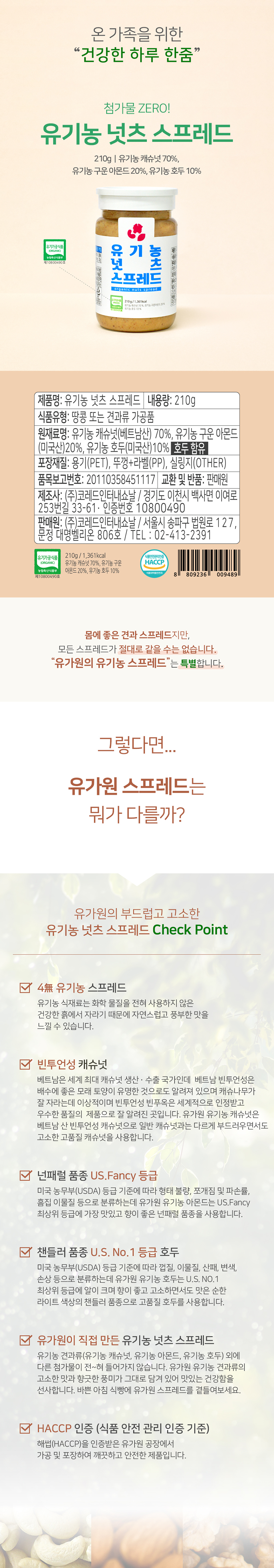 유기농 넛츠 스프레드 210g